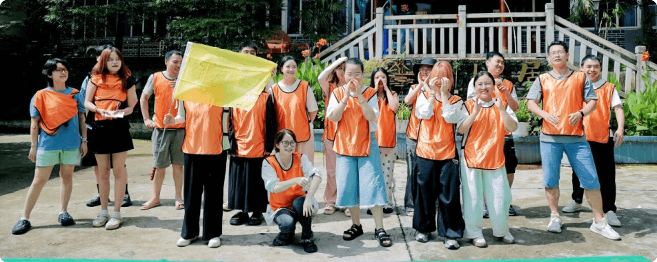 上午是团队活动,到达归园居活动场地后,小伙伴们迅速进入状态在教练的带领下完成趣味分组,一场"江湖麻将"竞技火热展开。各队疯狂角逐,轻松愉快的氛围让大家快速破冰,最终由绿队夺得冠军!